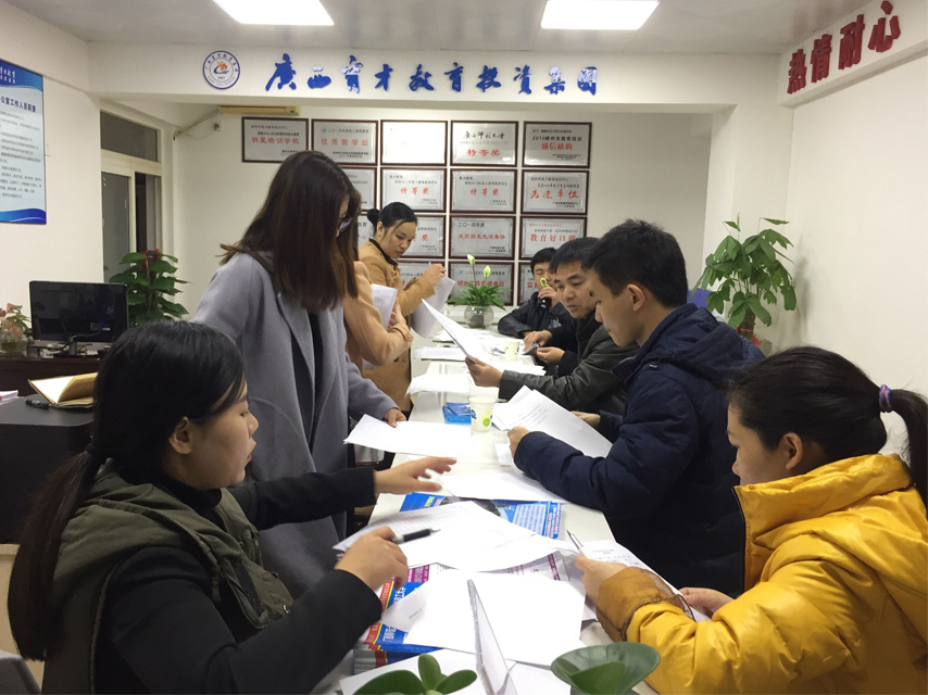 檢查組一行首先參觀了育才南寧分校的辦公環(huán)境和教學設施設備,并查閱了有關學籍、教務、考務等方面的資料,對育才南寧分校的規(guī)范辦學表示滿意,隨后對南寧分校的教學管理老師進行了培訓,要求教學點落實常規(guī)教學、抓好考務管理、做好畢業(yè)生的登記和新生繳費報到工作。