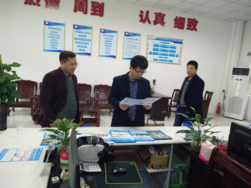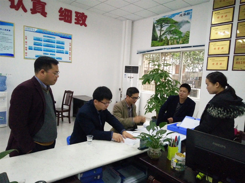 高東院長首先查閱了教學點的教學管理檔案,對來賓教學點的教學管理工作給予肯定。隨后高東院長一行查看了學生教材及學生教室,對教學點的日常教學提出了一些建議。育才負責人蔣華表示一定按照校本部的要求做好教學點的各項管理工作。