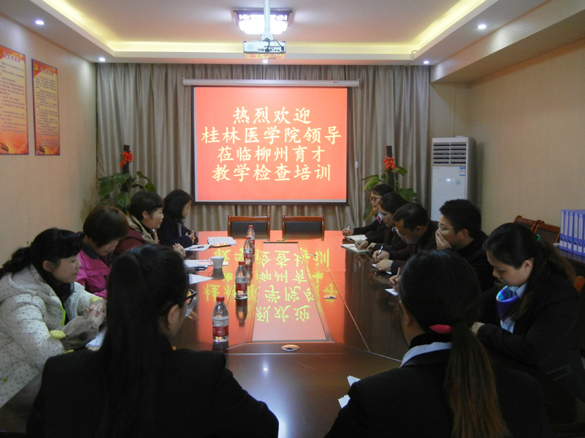3月23日,桂林醫(yī)學院繼續(xù)教育學院副院長何冰帶隊到育才柳州總部進行教學檢查和業(yè)務培訓。廣西育才教育集團黨支部書記、董事長蔣華、集團副總、醫(yī)學部部長蔣仕榮,集團副總、柳州市育才教育培訓中心副校長李彩梅參加匯報會,會議由何冰副院長主持。