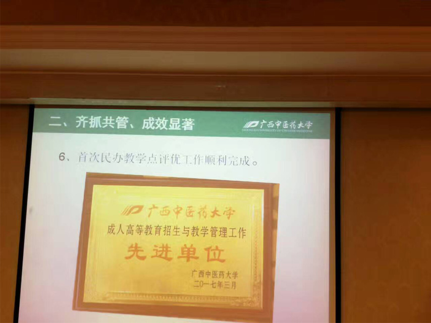育才教育教學(xué)點(diǎn)因工作出色,榮獲了廣西中醫(yī)藥大學(xué)2016年成人高等教育“招生與教學(xué)管理工作先進(jìn)單位”稱號(hào)。