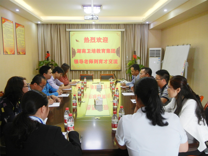 5月8日,湖南衛(wèi)培教育集團(tuán)董事長譚文會、副總譚文輝、行政總監(jiān)、教學(xué)總監(jiān)、市場總監(jiān)一行5人來我育才教育柳州總部參觀交流座談。