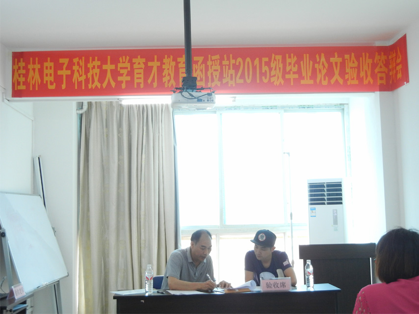 5月6日上午,桂林電子科技大學(xué)育才教育函授站在育才柳州總部舉行了2015級畢業(yè)論文驗(yàn)收答辯會(huì),桂林電子科技大學(xué)繼續(xù)教育學(xué)院副院長向榮到育才柳州總部出席答辯會(huì),共有58名本科畢業(yè)學(xué)生參加此次答辯。
