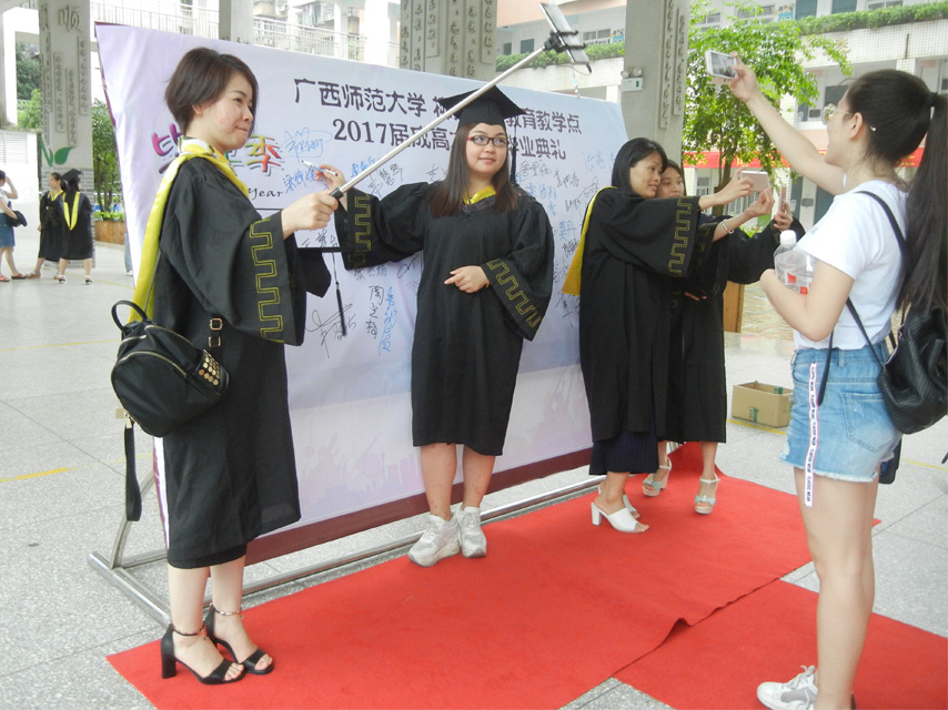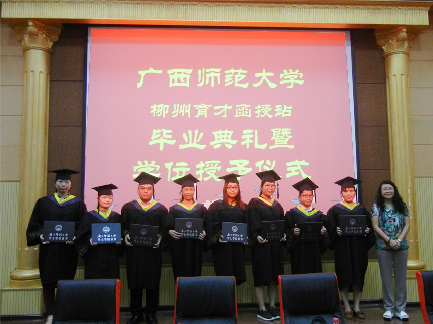 畢業(yè)典禮在奮發(fā)、圖強(qiáng)的廣西師范大學(xué)校歌《育才之歌》中圓滿結(jié)束。