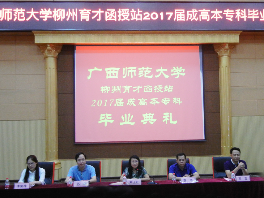 7月2日上午,廣西師范大學(xué)柳州育才函授站2017屆成高本??飘厴I(yè)典禮暨學(xué)位授予儀式在育才柳州總部隆重舉行。廣西師范大學(xué)繼續(xù)教育學(xué)院院長(zhǎng)、博士、教授劉玉紅、學(xué)歷部主任蘇華出席典禮,劉玉紅院長(zhǎng)作重要講話。育才黨支部書(shū)記、董事長(zhǎng)蔣華、柳州市育才教育培訓(xùn)中心校長(zhǎng)王志、常務(wù)副校長(zhǎng)李彩梅以及來(lái)自柳州市各區(qū)、縣的150多名畢業(yè)生代表參加了畢業(yè)典禮。