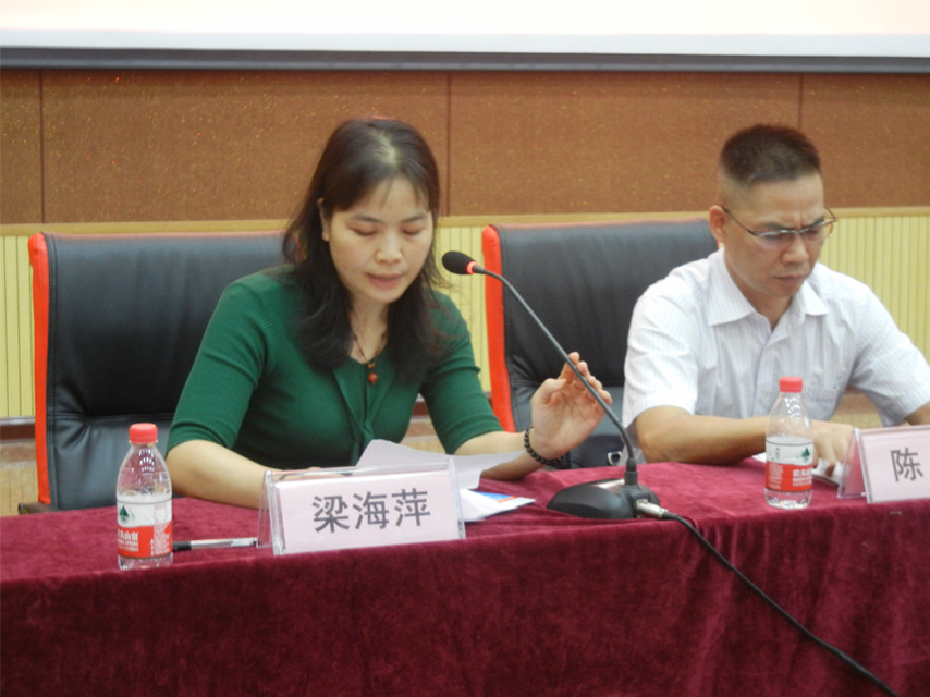 廣西大學(xué)繼續(xù)教育學(xué)院管理科科長梁海萍宣讀準予畢業(yè)決定、學(xué)位授予決定