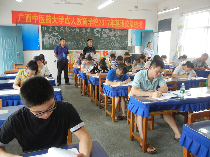 7月16日上午,廣西中醫(yī)藥大學(xué)成人教育學(xué)院柳州育才考點(diǎn)2017年英語校級(jí)統(tǒng)考(學(xué)位外語)考試順利舉行,廣西中醫(yī)藥大學(xué)成人教育學(xué)院副書記、副院長(zhǎng)覃振林、教務(wù)處莫老師到考點(diǎn)巡考。