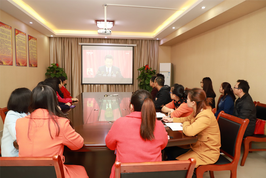 當日上午,柳州市育才教育培訓中心黨支部全體黨員在黨員活動室收看開幕會并聽取習近平總書記鏗鏘有力的報告。