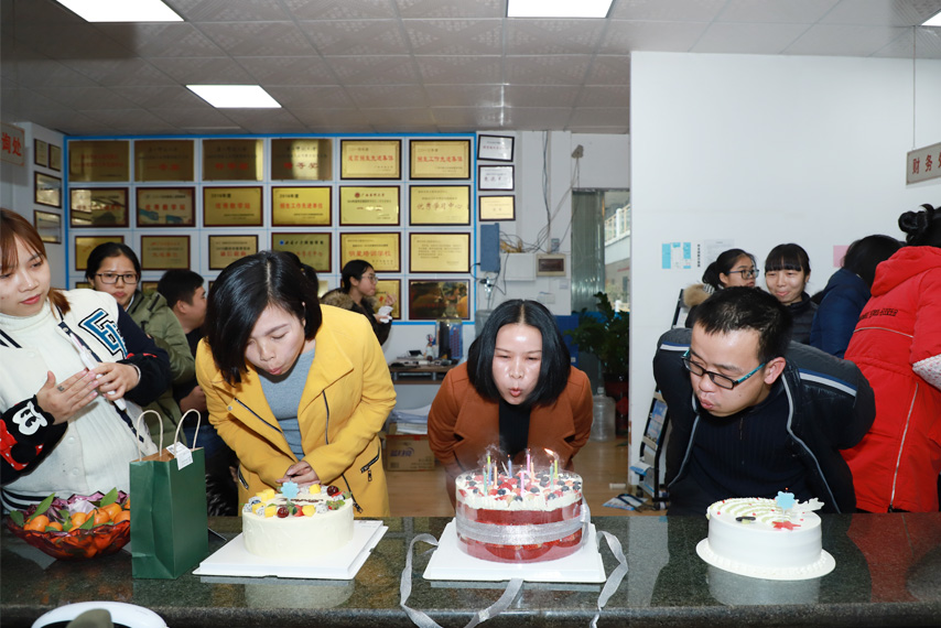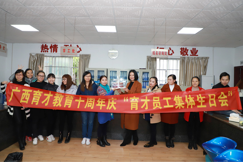 “誠信做事,創(chuàng)優(yōu)質服務;誠心做人,辦良心教育”是育才教育的服務理念。為弘揚公司文化,讓職工感受到育才教育大家庭的溫暖,對職工長期以來的辛勤工作給予肯定和感謝,表達公司對員工的點滴關懷,公司每個季度都會為員工舉辦集體生日會,當季度的壽星們同各部門人員聚齊在一起,大家其樂融融,幸??M繞其中。