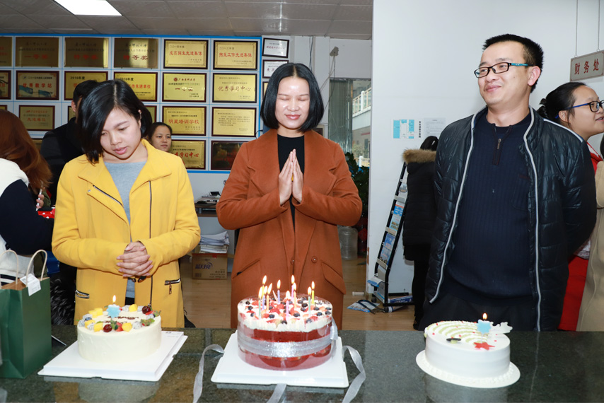 “祝你生日快樂,祝你生日快樂”12月11日下午,廣西育才教育為柳州總部和柳州分校29名教職員工舉辦了集體生日會,