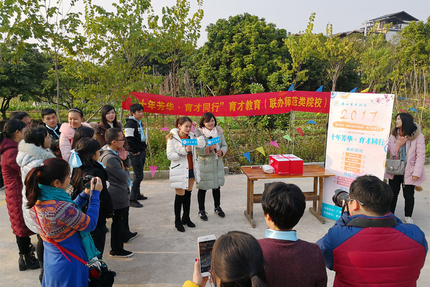 12月16、17日,育才教育柳州總部舉辦了2016、2017級師范類、工科類“芳華十年 育才同行”的師生聯誼活動,由學工辦和品宣部共同策劃,活動內容豐富多彩,包括快樂聚餐、趣味活動、十周年學員訪談分享、蛋糕分享等環(huán)節(jié)。多年來,育才堅持“服務至上、共同成長”企業(yè)使命,以服務為抓手,搭建好學員和高校的樞紐平臺,提高高校在當地的知名度和社會效益為指導思想,積極開展豐富多彩的學工活動,深受學員喜愛,也逐步成為各高校認可的一個亮點。通過聯誼活動,不僅擴大了同學們的交友圈,更為同學們的課外生活增添了不少樂趣,豐富了課余生活,營造了一種團結向上的良好氛圍,增進了師生之間的相互了解,促進了師生間情感的交流,實現學校成長、老師成長、學員成長的共同目標。