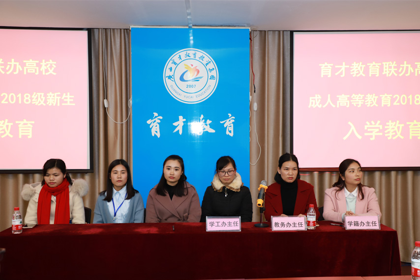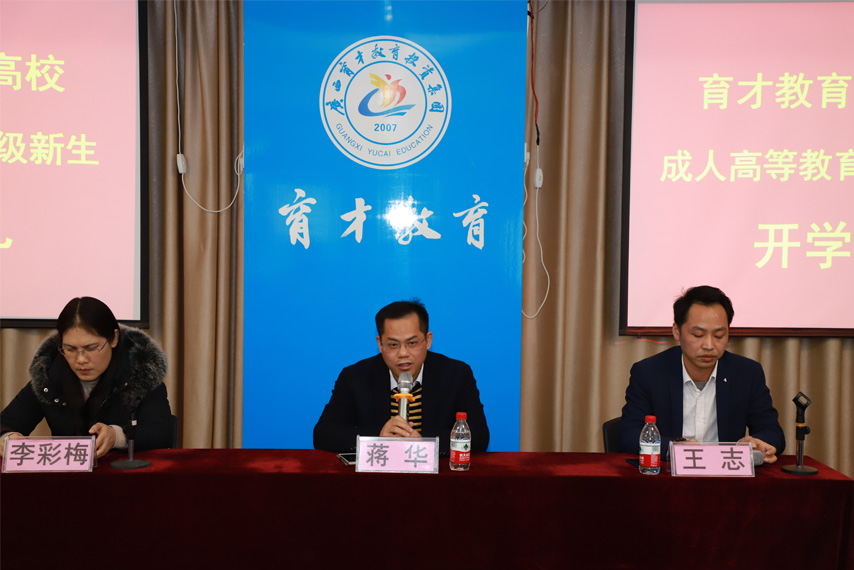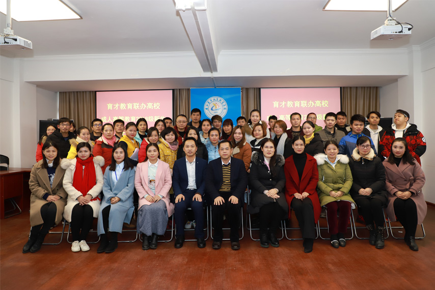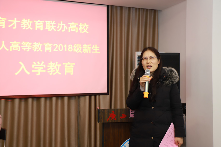 1月6日下午,育才聯(lián)辦的桂林電子科技大學、桂林理工大學、廣西民族大學、廣西教育學院2018級成高新生開學典禮在育才總部409多媒體教室召開,廣西育才教育黨支部書記、函授站站長蔣華老師、育才教育校長王志、常務副校長李彩梅和部分新生代表參加了典禮。