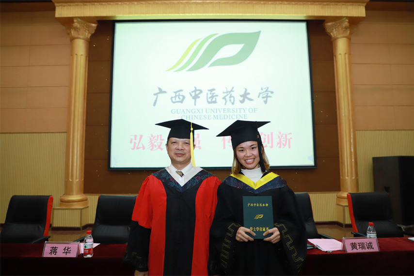 廣西中醫(yī)藥大學(xué)成教院院長(zhǎng)韋艾凌代表學(xué)院向順利完成學(xué)業(yè)的畢業(yè)生們表示熱烈的祝賀,他說(shuō),同學(xué)們選擇廣西中醫(yī)藥大學(xué)作為學(xué)習(xí)平臺(tái),克服工作和家庭的壓力,經(jīng)過(guò)三年的艱苦學(xué)習(xí),而今終于實(shí)現(xiàn)夢(mèng)想,嘗到了收獲的喜悅,這是一筆寶貴的財(cái)富,同時(shí)也完成了一個(gè)重要提升,希望同學(xué)們把畢業(yè)看作新的起點(diǎn),繼續(xù)學(xué)習(xí),為社會(huì)多做貢獻(xiàn),而母校將是同學(xué)們的堅(jiān)強(qiáng)依靠,提供最大的幫助和支持。