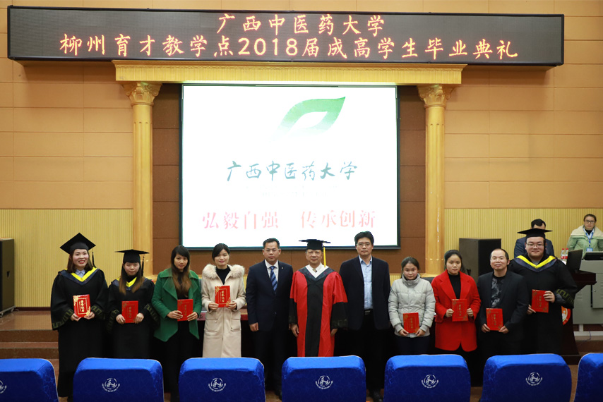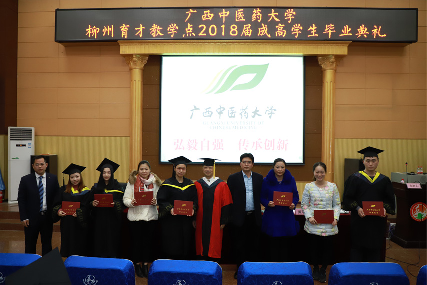 1月21日下午,廣西中醫(yī)藥大學(xué)育才教育校外輔導(dǎo)站2018屆成高學(xué)生畢業(yè)典禮暨學(xué)位授予儀式在柳州總部隆重舉行。廣西中醫(yī)藥大學(xué)直屬黨委書(shū)記、成人繼續(xù)教育學(xué)院院長(zhǎng)、博士生導(dǎo)師、二級(jí)教授韋艾凌、副院長(zhǎng)黃瑞誠(chéng)、院長(zhǎng)助理、培訓(xùn)部主任楊繼峰出席了畢業(yè)典禮,廣西育才教育黨支部書(shū)記、輔導(dǎo)站站長(zhǎng)蔣華老師、育才教育常務(wù)副校長(zhǎng)李彩梅以及來(lái)自柳州醫(yī)學(xué)行業(yè)的100多名專(zhuān)本科畢業(yè)生代表參加了畢業(yè)典禮。