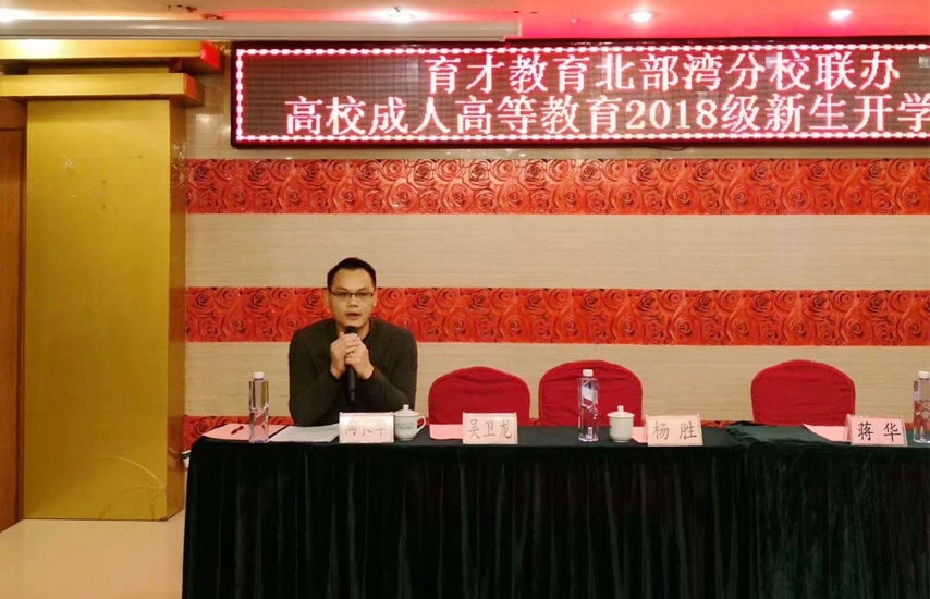 簡訊:3月18日上午,廣西育才教育聯(lián)辦高校北部灣欽州教學(xué)點2018級成人高等教育新生開學(xué)典禮在欽州分校舉行。廣西科技大學(xué)繼續(xù)教育學(xué)院副院長楊勝、學(xué)歷教育科科長吳衛(wèi)龍、育才教育黨支部書記、董事長、總經(jīng)理蔣華、欽州分校校長陶長華、辦公室主任黃燕芳以及60多名新生代表參加了典禮,典禮由黃燕芳主任主持。