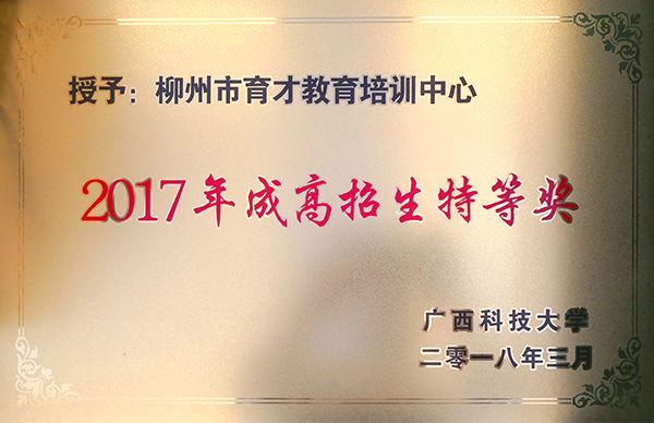 育才教育榮獲廣西科技大學(xué)“2017年成高招生特等獎(jiǎng)”