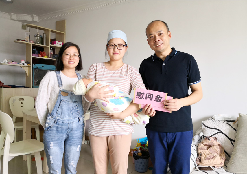 4月12日,廣西育才教育工會代表一行來到產后正在家中休養(yǎng)的王燕霞老師家中,送上了慰問金,并轉達了全體教職工的問候與祝福。