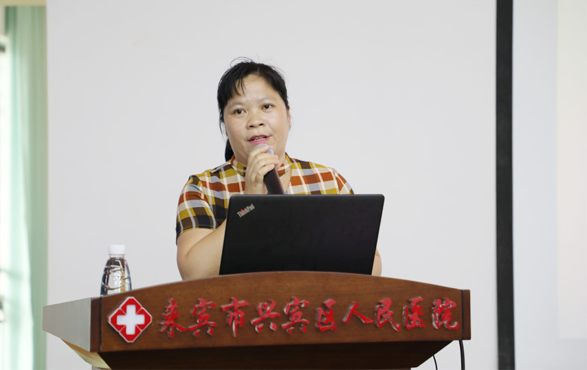 來(lái)賓市興賓區(qū)人民醫(yī)院護(hù)理部主任羅愛(ài)秀主持講座