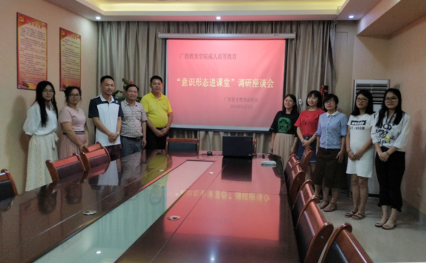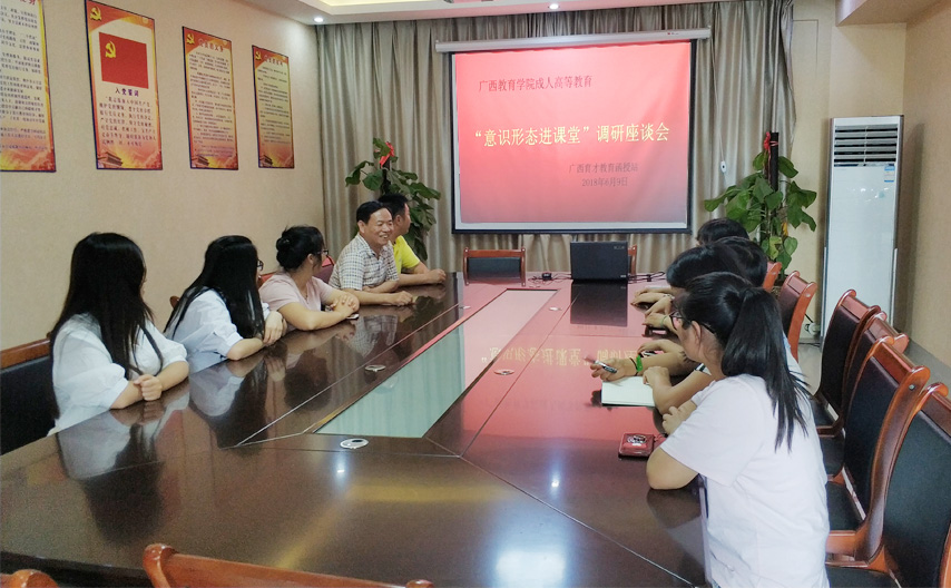 廣西教育學(xué)院成人教育學(xué)院覃明勇主任、陶文清老師到育才函授站召開(kāi)“意識(shí)形態(tài)進(jìn)課堂”調(diào)研座談會(huì)