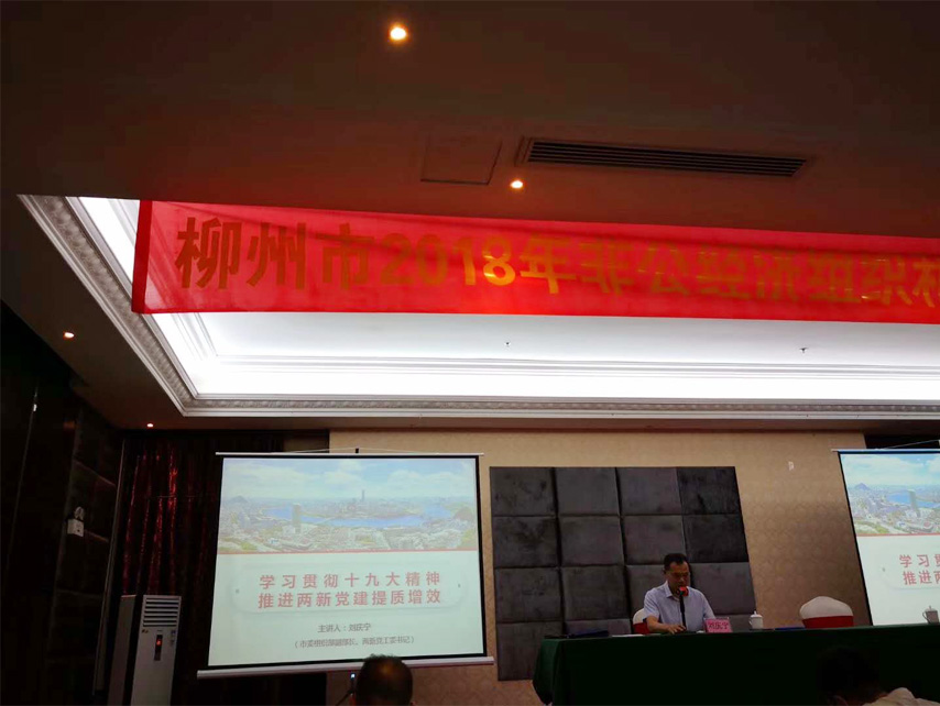 為深入學(xué)習(xí)領(lǐng)會(huì)十九大報(bào)告精神,貫徹落實(shí)新時(shí)代黨的建設(shè)總要求,進(jìn)一步提高兩新組織黨組織書記的理論水平和業(yè)務(wù)能力,全面提升兩新組織黨建工作上水平,6月11-12日,黨支部書記蔣華參加了由柳州市組織部、兩新組織黨工委主辦的為期兩天的柳州市2018年非公經(jīng)濟(jì)組織和社會(huì)組織黨務(wù)工作者培訓(xùn)班學(xué)習(xí)。