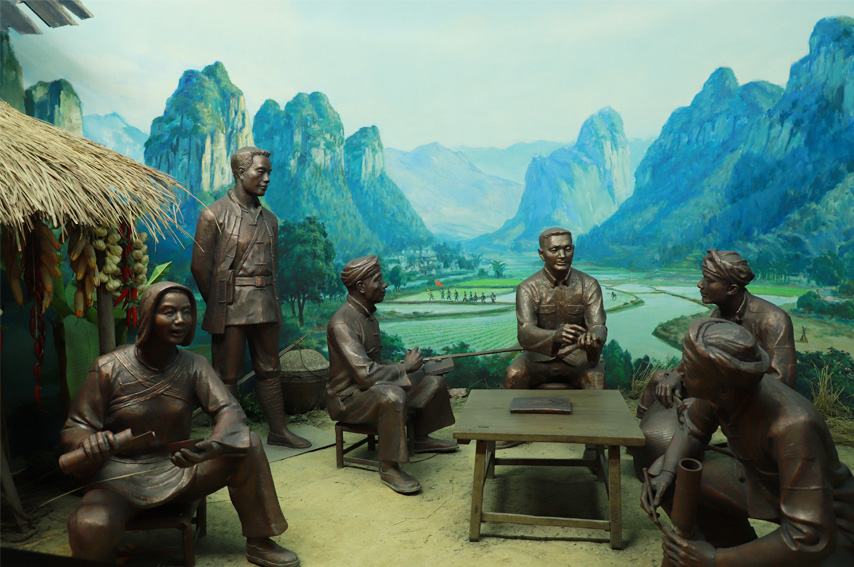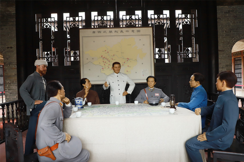 在百色起義紅七軍軍部舊址粵東會館,大家踏著百色起義革命先烈的足跡,先后參觀了鄧小平政委辦公室、張云逸軍長辦公室、紅七軍參謀處、警衛(wèi)班、食堂等舊址。黨員們親眼目睹和感受了當(dāng)時簡陋的生活條件和艱苦的作戰(zhàn)條件,對老一輩革命家的崇高敬佩之情不禁油然而生。