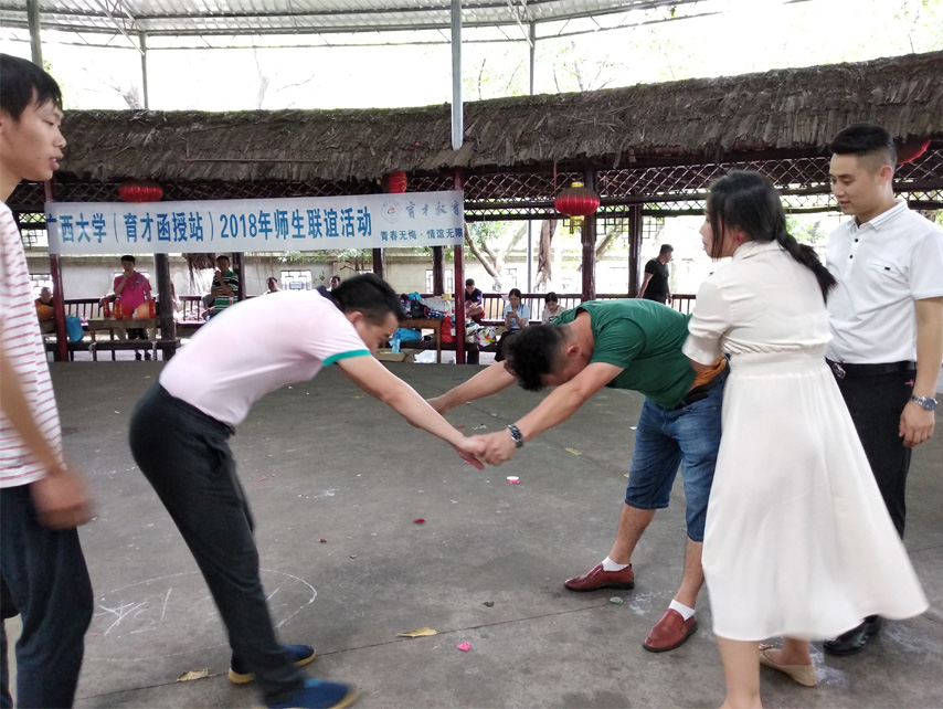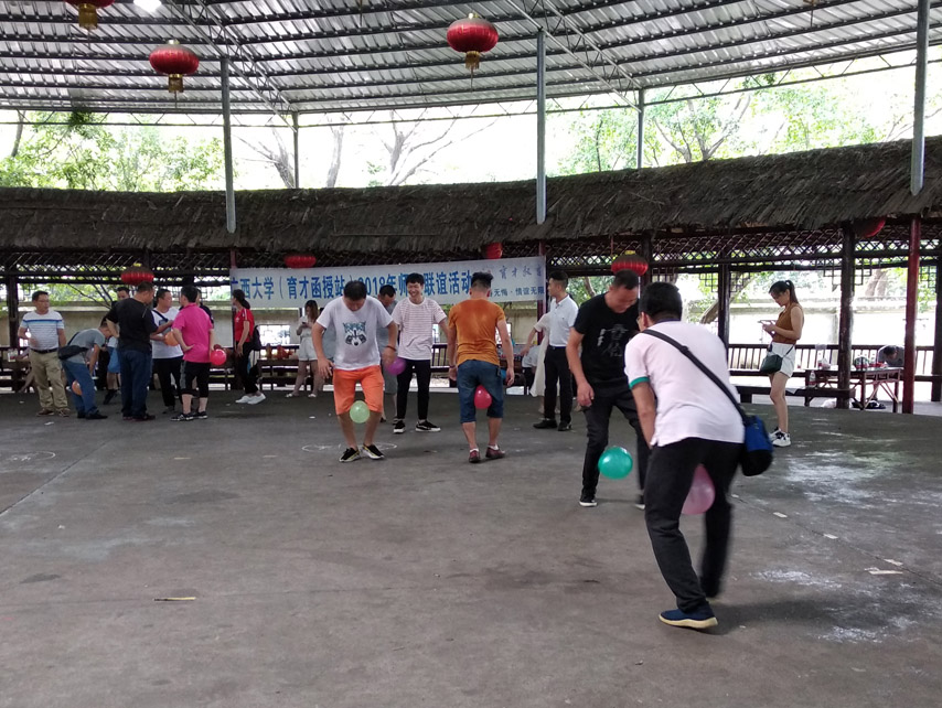青春無悔,情誼無限。7月8日,2018年春學(xué)期廣西大學(xué)師生聯(lián)誼活動在柳州萬聚山莊順利開展,70余名師生參加了活動。本次活動由廣西大學(xué)育才教育函授站組織,活動內(nèi)容包括歡樂聚餐、趣味游戲、聯(lián)誼交流等環(huán)節(jié)。趣味游戲環(huán)節(jié)設(shè)置了丑小鴨賽跑、接力脫衣穿衣、心有靈犀猜成語、九人十足游戲,其中各個游戲的懲罰環(huán)節(jié)成為現(xiàn)場活動的亮點和笑點。師生齊上陣,既有既當(dāng)裁判又當(dāng)運動員“欲玩還羞”的老師,又有多才多藝的學(xué)生主持人,還有足以“走紅抖音”的“戲精上身”搞笑片刻。在這個火熱的盛夏,在這個春學(xué)期期末的課余時間里,青春寫在同學(xué)們的臉上,展現(xiàn)在師生之情的良好氛圍中,一起悅享生活,攜手進(jìn)步。