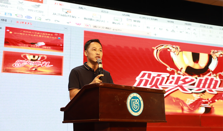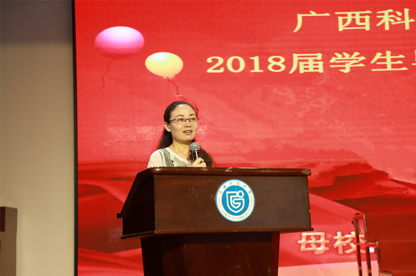 韋鴻鵬院長作了熱情洋溢的致辭,他代表學(xué)校向順利完成學(xué)業(yè)的畢業(yè)生們表示熱烈的祝賀,他說,有五個忘不了:忘不了學(xué)生晚上下班之后冒著大雨來學(xué)校上課的情景;忘不了同學(xué)們來報道排隊的時候只見龍頭不見龍尾的場面;忘不了期末考試時堵得水泄不通的學(xué)校主要干道,一排排汽車和電動車成為一道特別的風(fēng)景;忘不了有些同學(xué)帶著孩子、孕婦同學(xué)挺著大肚子來上課和考試的感人畫面;忘不了有些同學(xué)在畢業(yè)的同時也收獲了結(jié)婚證,學(xué)業(yè)愛情雙豐收。同學(xué)們克服學(xué)工矛盾堅持完成學(xué)業(yè)不容易,這注定是一個難忘和收獲的季節(jié),廣西科技大學(xué)已成為你們的母校,成為你們刻骨銘心和忘不了的地方。同時向同學(xué)提出兩點希望和囑托:希望同學(xué)們初心不改、始終保持積極向上、奮發(fā)有為的精神狀態(tài),勝不驕敗不餒,不斷學(xué)習(xí)和吸收新的知識,優(yōu)化知識結(jié)構(gòu),與時俱進,歡迎同學(xué)們回到母校充電提升自己;希望同學(xué)們適應(yīng)新時代,做一個敢于擔(dān)當(dāng)、敢于負責(zé)、敢于作為的人。