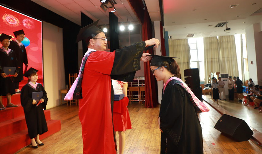 韋鴻鵬院長為獲得學(xué)士學(xué)位的畢業(yè)生行“撥穗禮”
