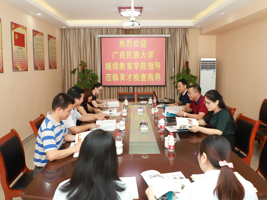 8月9日,廣西民族大學繼續(xù)教育學院院長覃志和、副院長唐曉華一行4人到育才教育柳州總部檢查指導(dǎo)工作。