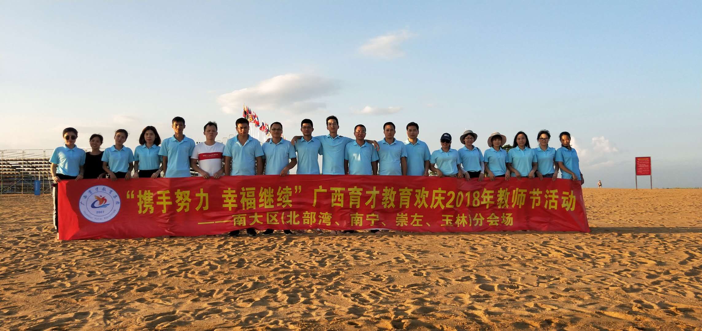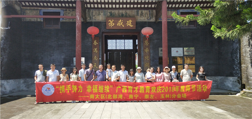 攜手努力,幸福繼續(xù)。9月19日,廣西育才教育北部灣、南寧、崇左、玉林分校2018年教師節(jié)主題活動在欽州精彩舉行?;顒觾热莅ɑ佑螒颉⒂^劉永福、馮子材故居、歡樂聚餐等環(huán)節(jié)。通過一系列活動豐富了教職員工的課余生活,調動了積極性,讓老師們以更好的心情和狀態(tài)投入到2018-2019新學期的工作中。