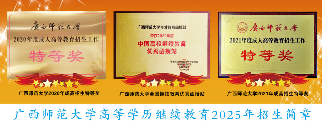 廣西師范大學(xué)成人教育辦學(xué)已有五十多年的歷史,培養(yǎng)了9萬多名成教本??茖W(xué)生,是“全國成人高等教育評估優(yōu)秀學(xué)?!?、“全區(qū)成人高等教育評估優(yōu)秀學(xué)?!保菢s獲“教育部高等學(xué)校繼續(xù)教育示范基地”和具有成人教育學(xué)碩士授權(quán)點(diǎn)的高校,是全國成人高等學(xué)校招生統(tǒng)一考試(簡稱成人高考)考區(qū)。