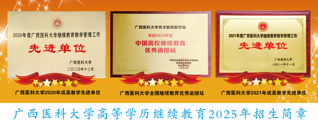 廣西醫(yī)科大學(xué)繼續(xù)教育學(xué)院始建于1959年,辦學(xué)經(jīng)驗(yàn)豐富、師資力量雄厚、教學(xué)管理規(guī)范。學(xué)院曾被教育部、教育廳分別授予“高等教育自學(xué)考試工作先進(jìn)單位”、“成人高等教育評(píng)估優(yōu)秀學(xué)?!钡确Q號(hào)。學(xué)院現(xiàn)有自學(xué)考試、成人業(yè)余班等多種辦學(xué)形式。學(xué)生凡修完全部教學(xué)計(jì)劃課程,經(jīng)考核合格者,科獲得學(xué)校頒發(fā)的畢業(yè)證書,證書由教育部統(tǒng)一網(wǎng)上備案,國家承認(rèn)學(xué)歷; 符合學(xué)位授予條件的本科畢業(yè)生,可獲得學(xué)士學(xué)位。為了方便廣大學(xué)生就近上學(xué),學(xué)校在全區(qū)各地開設(shè)有教學(xué)點(diǎn),開展送教上門服務(wù)。